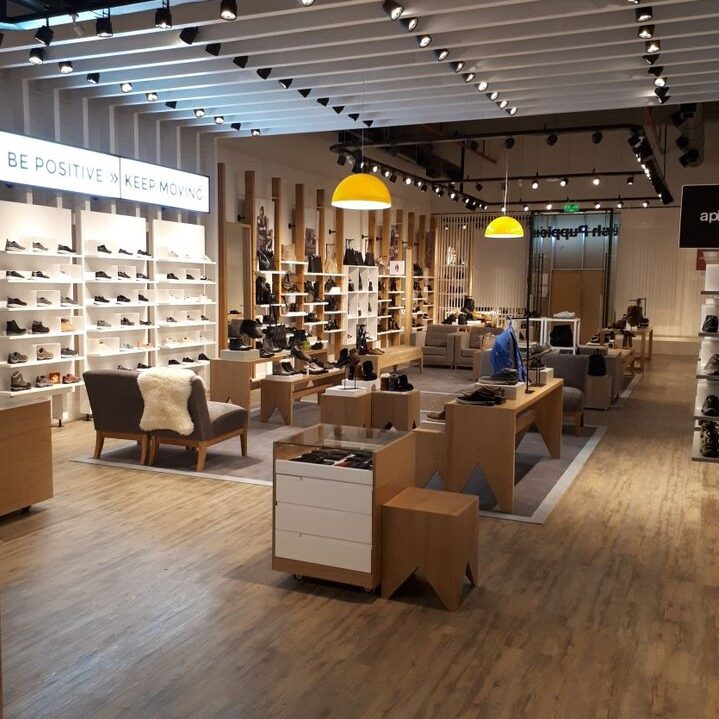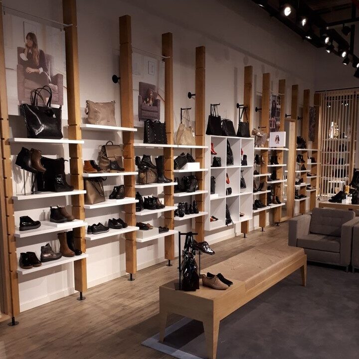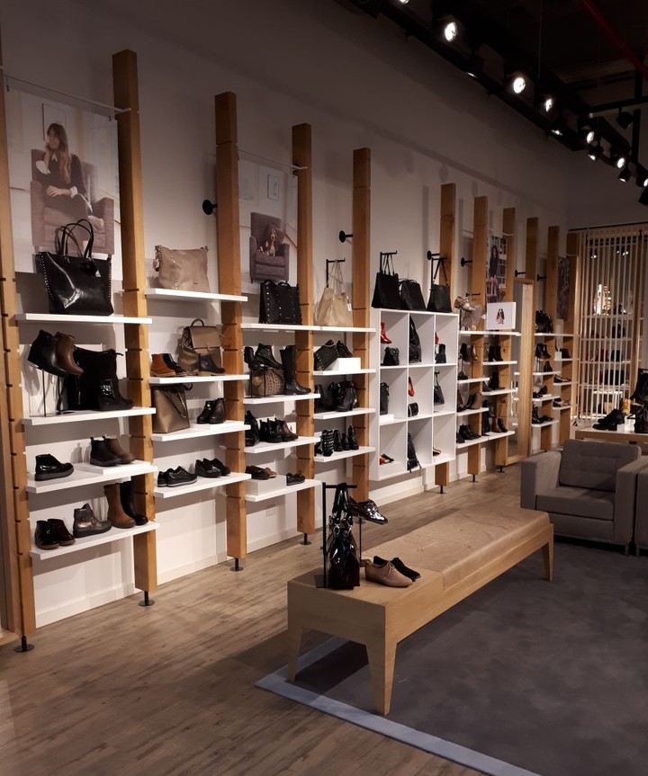 El diseño del local combina calidez y funcionalidad en un ambiente cómodo y relajado. La madera clara y los tonos neutros enmarcan una exhibición ordenada, con zonas de descanso que mejoran la experiencia de compra. Elementos gráficos y luminarias amarillas refuerzan la identidad de marca, creando un espacio moderno, amable y memorable.