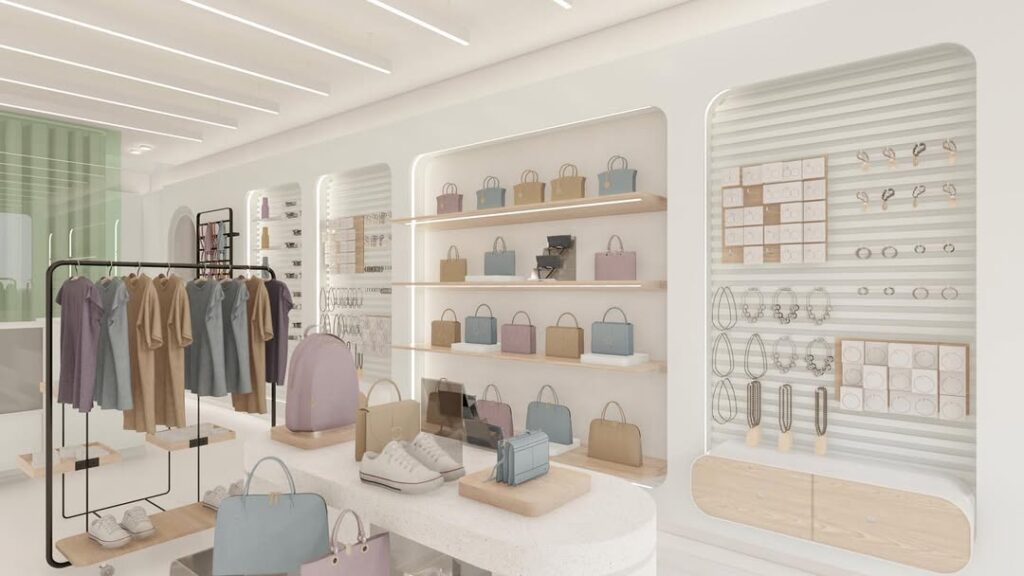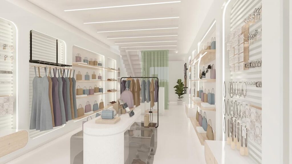 Un proyecto de diseño que apuesta por la pureza formal y la paleta suave. La tienda presenta un interiorismo pulcro y femenino, con estanterías retroiluminadas, mobiliario curvo y detalles en verde pastel que destacan sobre el blanco dominante. El lenguaje visual refuerza la identidad de marca, logrando un espacio delicado, contemporáneo y funcional.